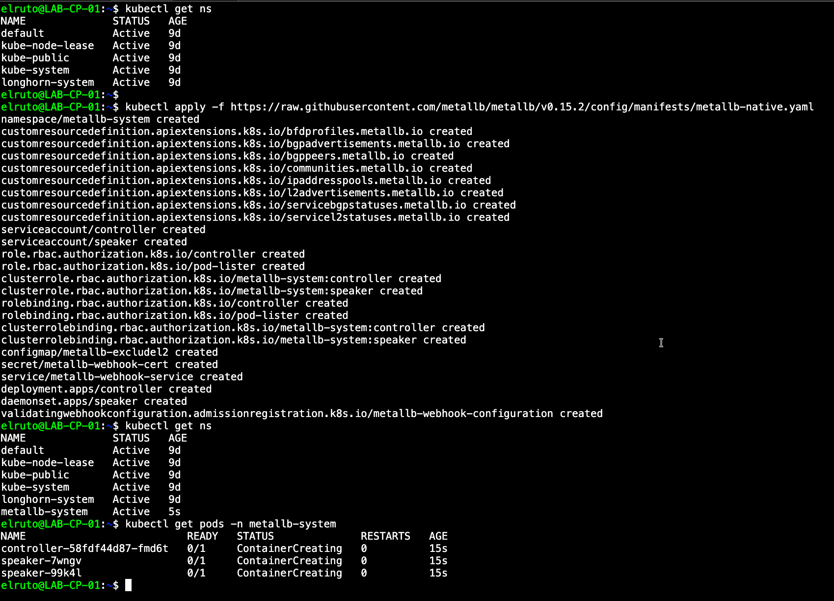 Now that our storage is ready, let’s set up MetalLB to provide proper load balancing capabilities. MetalLB will allow us to create Kubernetes LoadBalancer services that have real IP addresses on our network.