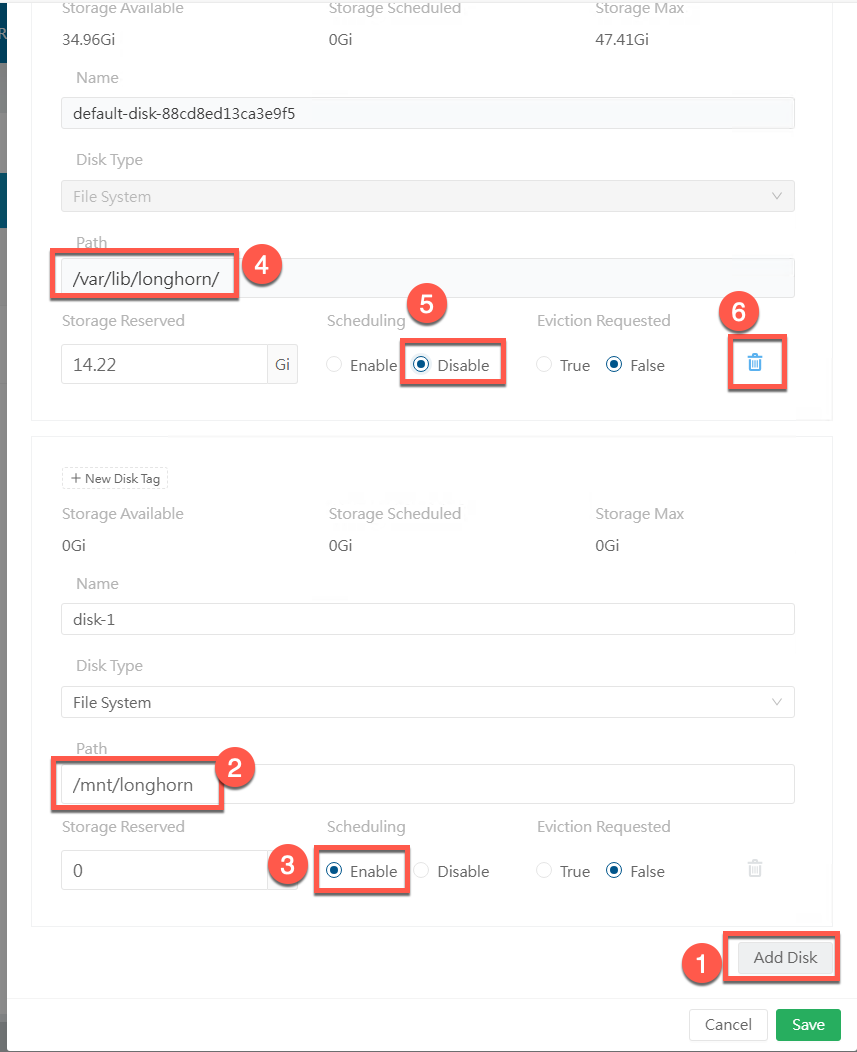 Adding Additional Disks in Longhorn UI - DO ON ALL NODES