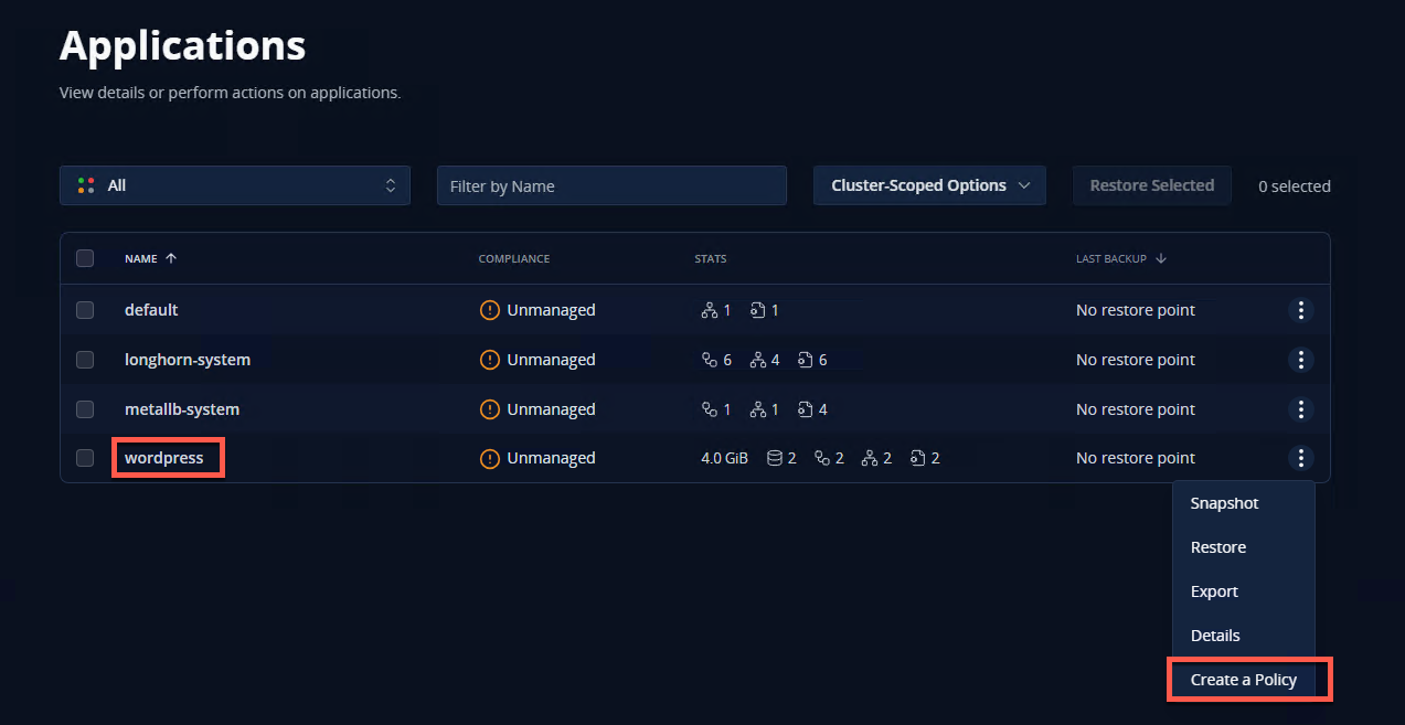 - Create Our First Backup Policy: Set up automated protection for our applications