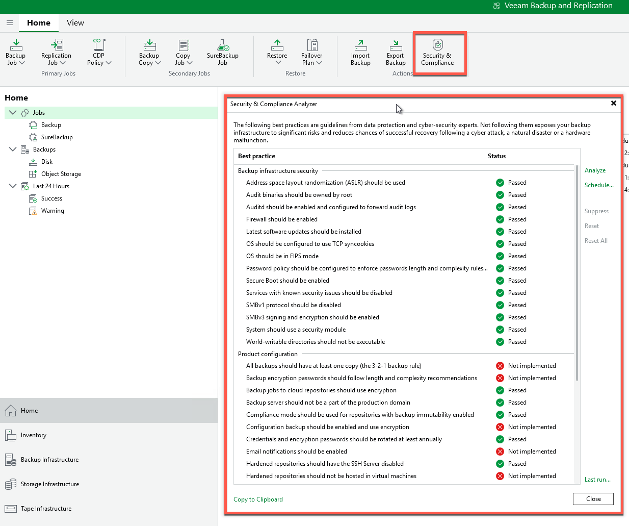 This is your security assessment tool that scans your Veeam configuration looking for weaknesses: