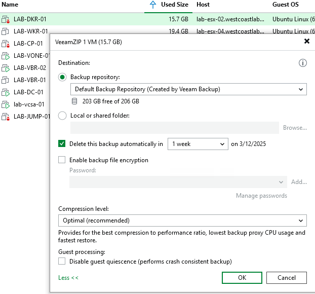 Planning to delete a VM but want to keep a copy “just in case”? VeeamZIP it to a repository or file share, and you’ve got a safety net without keeping the VM running and consuming resources.