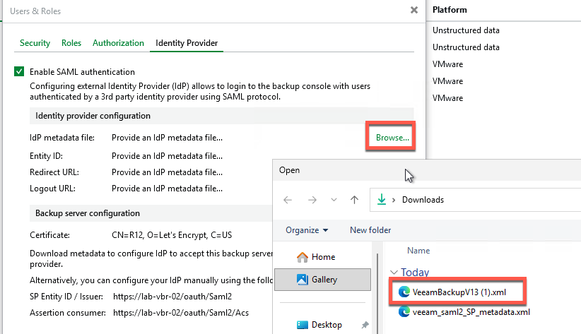 With SAML support in V13, all that changes. Your users can now authenticate to Veeam using your existing identity provider, complete with MFA, conditional access policies, and centralized user management.