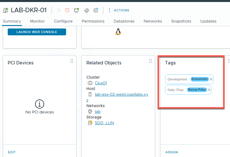 This being a Docker host, I’ll tag it for a daily backup and Development.