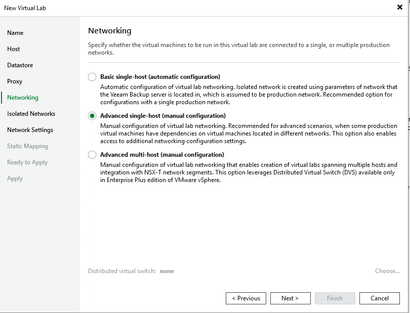 - By default only the VBR server will be able to reach into the isolated network, this is so that it can perform the required testing that it needs however you can add a static route here if you wish. the benefit here is that lets say you want to boot this up to test a SQL upgrade, well this will allow you to add additional routes in so that the DBAs can get to the isolated network and test their upgrades